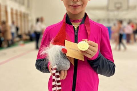 Popov Mira 1.a osztályos tanuló a december 5-én megrendezett Mikulás Kupán a gyakorlatával arany minősítést ért el. Felkészítő tanára: Balla Anett.