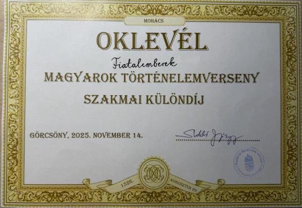"Magyarok" hadtörténeti verseny Görcsönyben - Első helyezés és szakmai különdíj