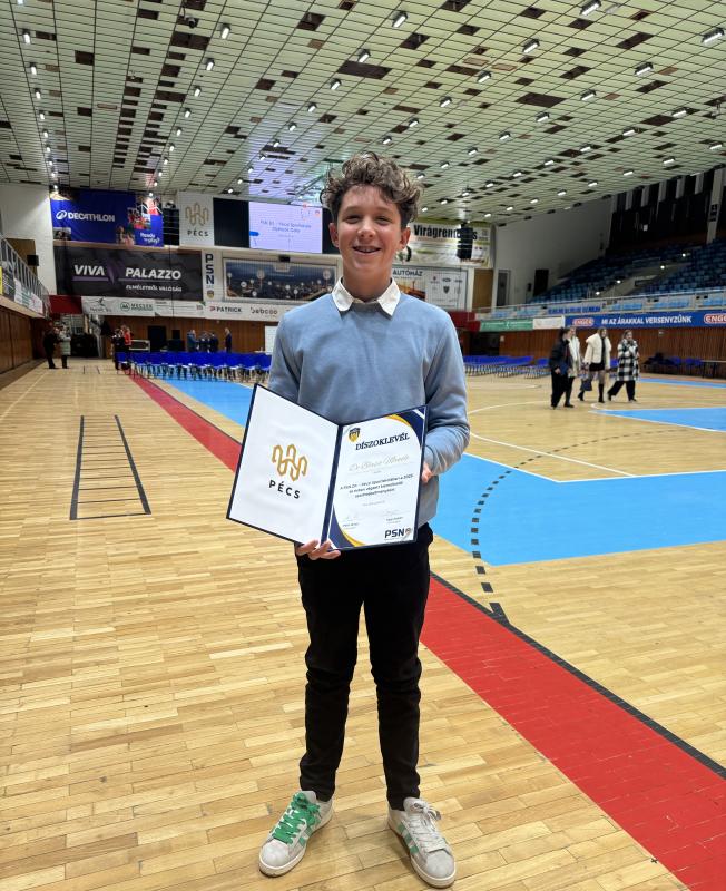 2026-01-27 2026. január 26-án De Blasio Manolo 7.a osztályos tanuló a PSN Zrt. díjátadó ünnepségén díszoklevelet vehetett át a 2025-ös évben végzett kiemelkedő sportteljesítményéért. Gratulálunk