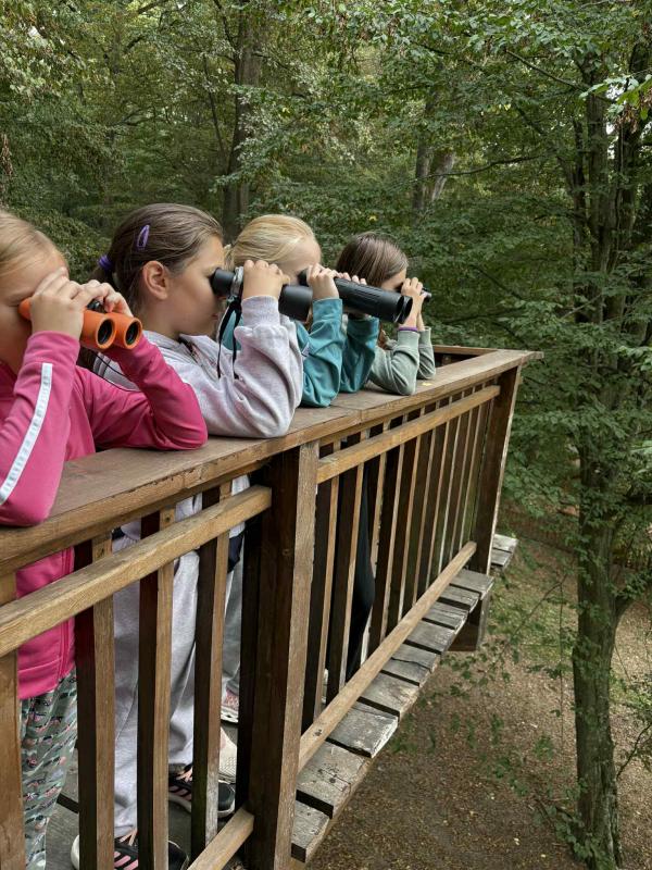 Az erdei iskola során a környezetvédelmi foglalkozásokon a gyerekek megismerték az erdő élővilágának alapjait: a növények, fák, gombák és állatok szerepét az erdei közösségben. Az est folyamán különleges élmény várta őket: szarvasbőgést hallgattak az éjjeli erdőben, és más állatok éjszakai hangjait is felfedezték. Volt, aki izgatottan figyelte, vajon az éjszaka közepén bekopog-e hozzájuk valami kis vendég; és valóban, az egyik este egy béka kúszott be az ebédlőbe, nagy derültséget okozva. Diákjaink megtekintették a lombkoronasétányt, ahol bejárhatták az erdő fáinak felső régióit, közelről is megcsodálhatták az élőlényeket, leveleket, madarakat, illetve az azokról kitett ismertetőket is elolvashatták.