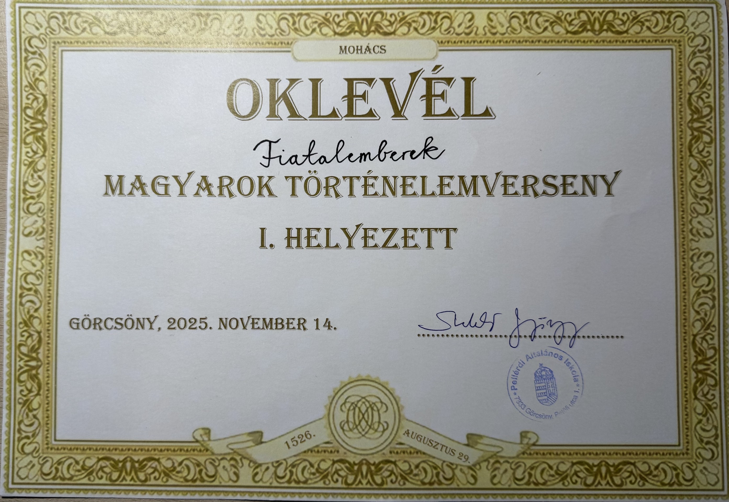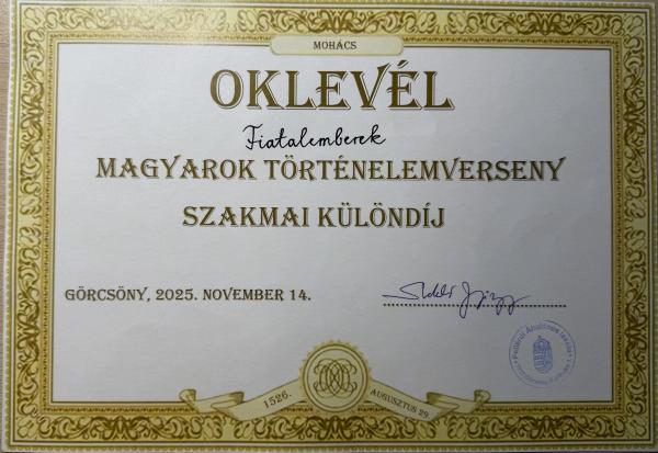 történelemversenyen diákjaink nemcsak az első helyet szerezték meg, hanem a szakmai zsűri